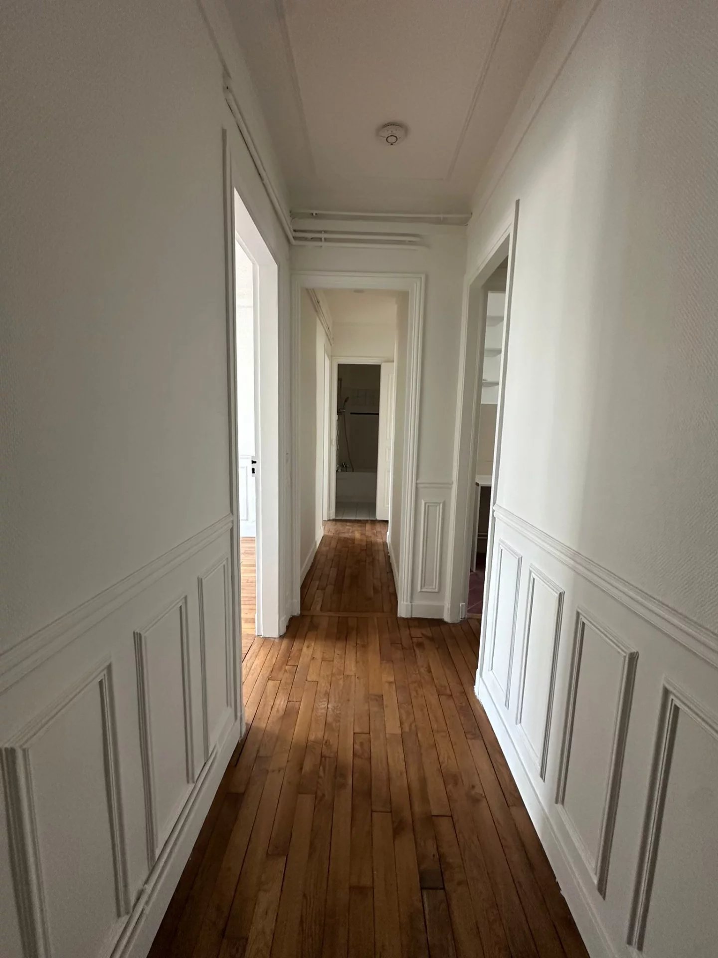 Dès l’entrée, l’appartement séduit par son atmosphère chaleureuse et authentique. Les parquets en chêne, les moulures élégantes, les cheminées d’époque et la belle hauteur sous plafond rappellent les codes de l’architecture haussmannienne, soigneusement préservés.